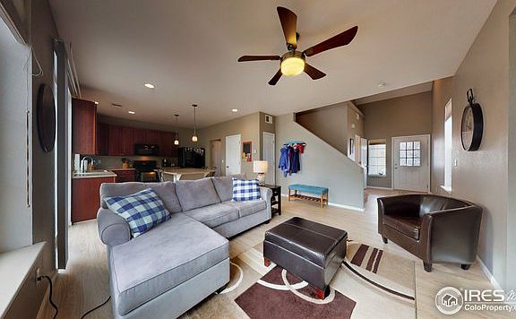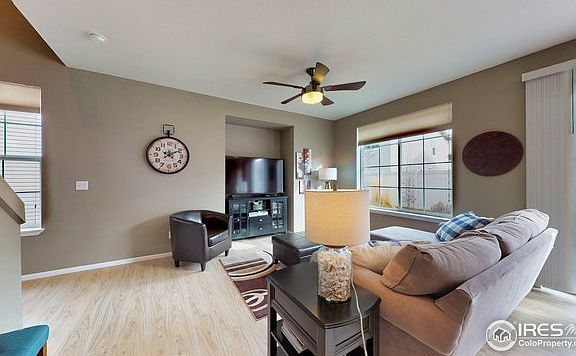 Immaculate, well-maintained home in Thompson River Ranch. Newer laminate flooring on the first floor. Kitchen with island and pantry. Generous master bedroom with walk-in closet, full bath with beautiful barn door. Two more bedrooms upstairs share a Jack-n-Jill bath. Low maintenance vinyl siding and tile roof. Metro tax includes use of pool, trails, playground, disc golf, with no added HOA fees. Thompson School District is building a new K-8 school in TRR next year. Super easy access to I-25, Centerra Shops, and MCR. Cute little fenced yard with nice patio.