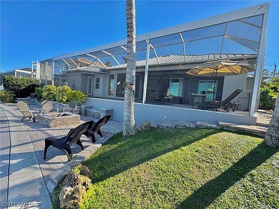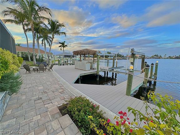 A must see unique Gulf Access Home in Burnt Store area. This 3bd/3ba/den located just a couple of minutes by boat to Matlacha, surrounded by great fishing spots and restaurants. Stunning 10ft sliders along living area provide wide open water views. Five walk-in closets throughout. Master bath with plenty of natural light and separate vanity. Den features custom cabinets with safety locks and quartz countertops. 2nd master and extra large guest BR. 12,000Lb boat lift with over sized wrap around dock & tiki bar/grill. Ideal home for entertainment and boating. Impact windows, galvanized aluminum roof, Pentair pool equipment/LED lights. 3 car garage, one converted into under air studio with countertop sink and plenty of track lighting. It is prepared for you to convert back to a 3rd garage if needed. Completely fenced in, matured landscaping, zen garden, palms trees. Large under air exterior storage room. 500 gal. gas tank feeds kitchen stove, water heater, pool/spa, and grill or generator connection. Utility assessments paid. Additional water filter system. Walking distance to Sirenia Vista Park by the water and Joe Stonis Park with pickle ball. Your own piece of paradise.