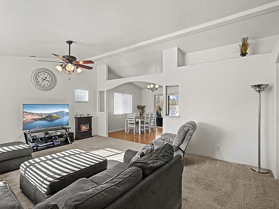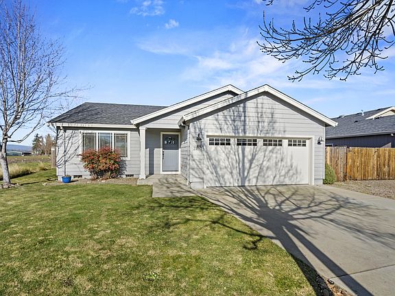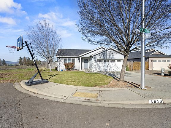 Located at the end of a cul-de-sac within the highly sought-after Lisk Estates, this custom-built Bob Fellows home epitomizes quality craftsmanship and modern elegance. Perched on a generous corner lot, residents can enjoy views of Mt. McLoughlin, while having extra field space to utilize. The interior boasts numerous premium upgrades, including granite countertops, plush carpeting, and lighting fixtures. The entryway, dining area, and kitchen feature upgraded flooring, contributing to the home's aesthetic. Designed with a thoughtful split floor plan, the residence offers vaulted ceilings, stainless steel appliances, and custom cabinetry. Additional conveniences encompass an indoor laundry room and a finished two-car garage. The exterior is equally impressive, with a meticulously landscaped front yard equipped with a timed sprinkler system and a covered back patio. This property is located in a USDA-eligible area.