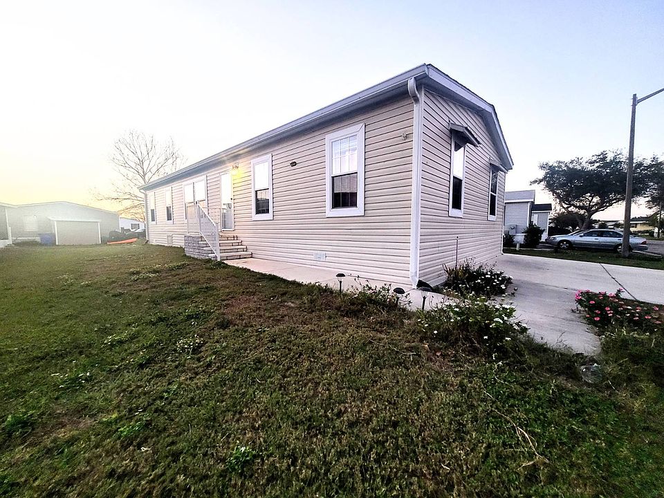 Manufactured Home on Leased Land with Lot Rent. Discover this beautifully maintained 2021 manufactured home offering 1,568 SqFt of modern living space in a family-friendly community! This 4-bedroom, 2-bathroom home features sleek laminate flooring, central A/C, and stylish finishes throughout. The spacious kitchen is fully equipped with a range, refrigerator, microwave, and dishwasher, along with a garbage disposal for added convenience. A separate laundry area provides extra functionality, while the generous living and dining areas create a welcoming space for family and guests. Outside, the home boasts a well-maintained exterior, a storage shed, and a double parking area. Perfectly located just 35 minutes from Orlando's world-famous theme parks and one hour from the beach, this home offers both excitement and relaxation within reach. It is surrounded by grocery stores, pharmacies, and shopping plazas, with top-rated hospitals just 15 minutes away and A+ schools in the area, making it ideal for families. The community itself provides a peaceful atmosphere with fantastic amenities, including a clubhouse, pool, playground, and basketball court. With its move-in-ready condition, beautiful surroundings, and unbeatable location, this home is a rare find. Schedule your tour today and make it your forever home! Book your appointment today!