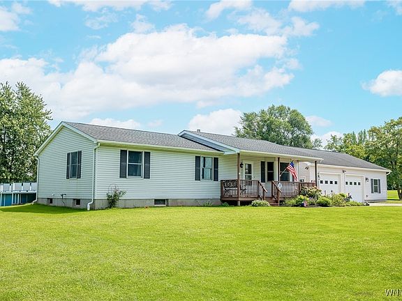 Discover your dream Albion retreat! This charming Ranch home sits on Almost 6 acres, offering both privacy & natural beauty. Main floor living!!! Set back from the road, it boasts mature trees, an attached 3-car garage & a front porch welcoming you. Inside, the bright space that has tons of natural light & open concept between the eat-in kitchen, dining room,and living room. First floor living at its finest! The large kitchen boasts Stainless Steel appliances that stay, modern finishes, and ample cabinet space. The enclosed breezeway is 10x6 with plenty of storage and closet space. The main floor master is highlighted by a spa like glass shower. Two additional bedrooms, a full bath & a conveniently located laundry room in hallway to complete the main level. The partially finished basement presents the opportunity for an extra room or office space, pellet stove and gym area. Enjoy your private backyard with deck off dining room and above ground pool. A full walkout basement with Bilco doors. A generator hookup adds practicality & peace of mind. The huge 3+ car garage with heater is a great spot for a work shop, storage or to keep you car free of snow this winter! Move in ready!
