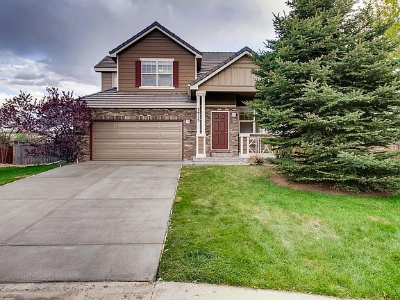 Wonderful two story home with one of the largest lots in The Meadows and also on a small cul-de-sac!! Walking distance to the The Grange community center and pools, Wiggly Field Dog Park, Paintbrush Park and the many miles of biking and running trails. Brand new driveway and carpet were both just recently installed. This home has an open floor plan on main level with a gas fireplace in family room for those cozy evenings watching movies. Kitchen opens into dining area and family room and all appliances stay with home. Upstairs has three bedrooms and two full bathrooms. Laundry is located upstairs as well with washer and dryer included. Large master bedroom / bathroom suite with spacious walk in closet. Rare huge backyard to throw the ball around, have a garden area or let the dogs play chase. Garage has a workshop nook. Home warranty also included with home for peace of mind. Easy access to I-25, schools and shopping. Very desired area with a rare opportunity for a lot this size!!