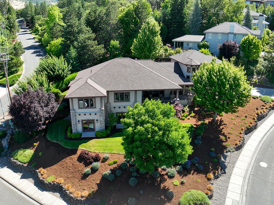 Step into luxury living at Cherry Lane Estates! This exceptional 4,620 sqft home offers 5 bedrooms, an office, 4.5 bathrooms, and an array of high-end features. Take in stunning valley views from over 1,000 sqft of covered outdoor spaces, complete with an outdoor kitchen, fireplace, ceiling fans, and two motorized sun shades. Perfect for entertaining, the home includes a theater, upper and lower living areas, wet bars, and a whole-house audio system. The gourmet kitchen is equipped with Jenn-Air commercial appliances, granite counters, and a built-in radius banquette. The primary suite features breathtaking views, natural light, a luxurious freestanding tub, and a walk-in closet with direct access to the laundry room. Situated on a beautifully landscaped oversized double corner lot with a tranquil pond and dual waterfalls. Additional highlights include a 3-car garage, central vacuum system, and a craft/hobby room on the lower level. Owner is a licensed real estate broker in Oregon.