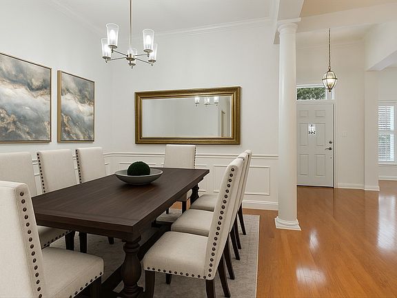 With high ceilings throughout the home, and the kitchen opening to the living and breakfast areas, it gives the home a warm and inviting feel. The primary bedroom has an en-suite bath complete with double vanities, soaking tub, stall shower, and large walk-in closet. The secondary bedrooms with hall bath have a nice separation from the primary bedroom. The office with built-ins could also serve as a second living area, if you so desire. Photos with furnishings are virtually staged.