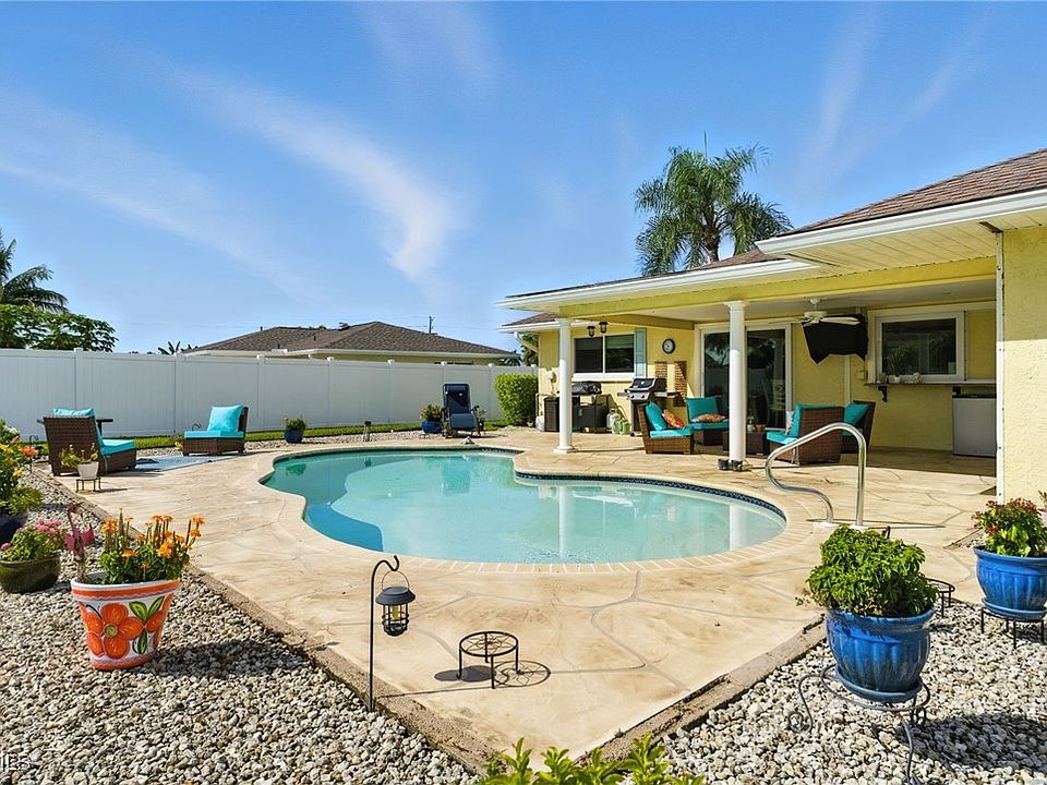 Welcome to 3913 SE 1st Pl, Cape Coral, FL 33904! This exceptional single-family home is nestled in one of Cape Coral’s most desirable southeast neighborhoods, just minutes from the Caloosahatchee River and vibrant downtown attractions. Step inside to a bright, open floor plan featuring 3 bedrooms and 2 bathrooms—perfect for families or entertaining guests. The spacious living and dining areas flow seamlessly into a modern kitchen with ample counter space, ideal for preparing meals and gathering with loved ones. Enjoy peace of mind with impact windows and doors throughout, offering enhanced safety, energy efficiency, and quiet comfort. Large sliding glass doors lead you to a sun-soaked open pool area, where you’ll find a luxurious heated pool—perfect for year-round relaxation and fun. The fully fenced backyard is beautifully landscaped with tropical palms and lush greenery, providing complete privacy. A convenient shed offers extra storage for tools, bikes, or pool accessories, while the two-car garage adds even more practicality. For added confidence, this home comes with a one-year home warranty covering all mechanical systems, ensuring worry-free living from day one. Located in a quiet, established neighborhood, you’re just a short drive from local favorites like The Boathouse Tiki Bar & Grill, Lobster Lady Seafood Market, and Cape Coral Yacht Club. Everyday essentials such as Publix Super Market, Walgreens, and Coralwood Shopping Center are also nearby. Whether you’re seeking a year-round residence or a vacation retreat, 3913 SE 1st Pl offers the perfect blend of comfort, style, and peace of mind. Don’t miss your chance to own this slice of paradise in Cape Coral!