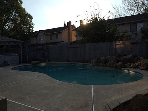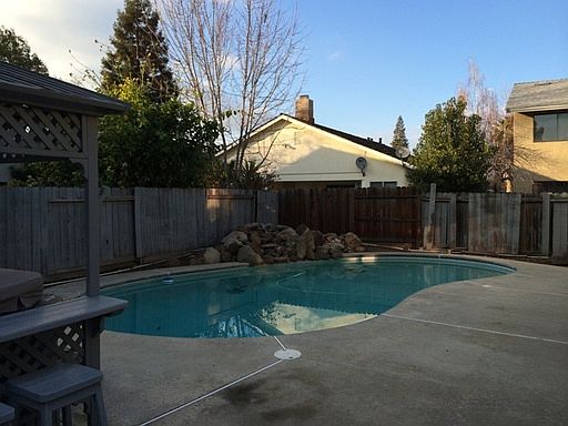 Located in north Modesto, approximately 2049 square feet, open floor plan, separate family room and living room, dining area, tile floors downstairs, carpets upstairs, electric range, dishwasher, microwave, garbage disposal, ceiling fans, gas fireplace, central heat & air, inside laundry room. Front and backyard landscaped with automatic sprinklers. In-ground POOL w/ weekly service provided. Located Pelandale Avenue to Blue Bird Drive right on Setrok Drive right on Setrok Court.Pets very strictly negotiable; one pet under 15 lb only. Six month or one-year lease only. Renter's Insurance Required.