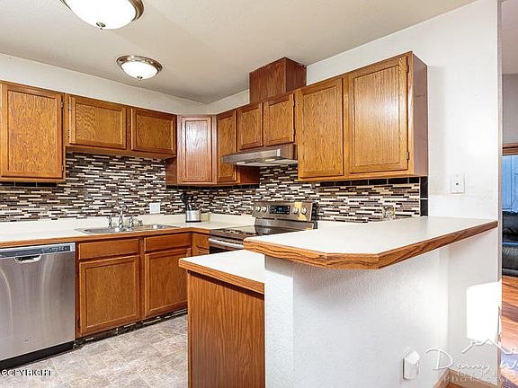 Lives like a single family but priced like a ZLL! This home is situated in a cul-de-sac and backs to greenbelt with trails connecting to Chugach Foothills Park! Master bedroom with updated en-suite and double closets. Kitchen with newer black splash, stainless steel appliances and flooring. Large, fully fenced, backyard with mature trees, large shed, and double gate for added parking.