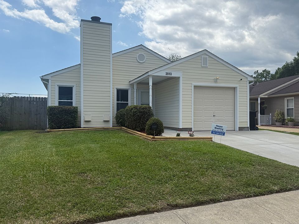 Bright, open and airy single family one level home. Large eat in kitchen. Tile in kitchen, bathrooms, foyer and hallway. Laminate wood in great room. 1 car attached garage. Large fenced yard. Storage shed. Planned community with swimming pools, tennis courts, playgrounds and lots of activities. Tenant pays all utilities. Freshly painted, new flooring, ceramic tile in foyer and kitchen and carpet in the three bedrooms, lvp in great room. Wood burning fireplace in great room. 1 car garage with opener. Privacy fenced yard.