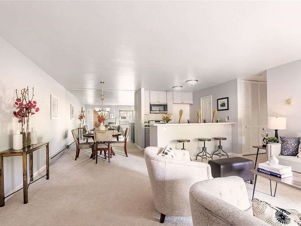 The one you've been waiting for! Immaculate ground floor condo has been thoroughly updated and is move-in ready * This open concept floorplan features large windows for an abundance of natural light * Recent upgrades include new kitchen cabinets, granite slab counters, stainless steel appliances, new lighting & floors * Kitchen also offers breakfast bar seating & spacious pantry * Inside laundry closet w/ full size washer & dryer * Generous master suite has extra closet space, access to outside patio for a morning cup of coffee/tea & a fantastic bathroom ensuite * Bathroom updates include painted vanity cabinet, new granite slab counter, new mirror & light * All new interior doors & baseboards, fresh interior paint * Large patio offers planting areas & a sizable storage closet * Unbeatable location is walkable (across the street!) from most conveniences including Target, Trader Joe's, Safeway & many other errands, restaurants, entertainment options *HOA incl pool, security gates, more!