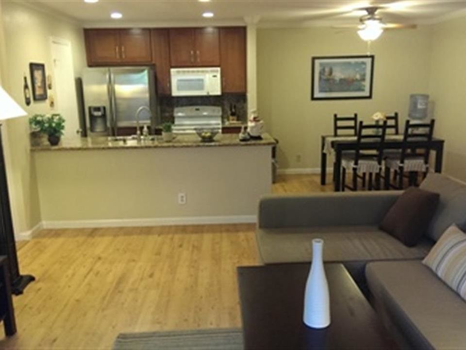 Beautiful & Updated condo w/ detached garage. Ready 2 move in. Spacious 1 bedrm & living rm w/ access to patio. Gorgeous kitchen w/ granite; newer cabinets, sink & faucet. Updated bathrm w/ new granite & sink. Laminated hardwd flr. Large patio w/ fish pond. Gated & across fr Fremont HUB. Must see ..