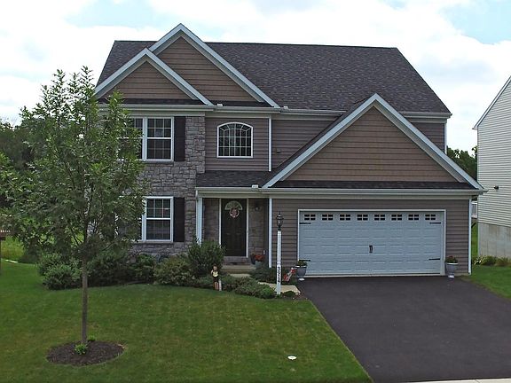 Almost like new 4 bedroom 2.5 bath Britney model located in Hempfield School District, this bright and open floor plan has beautiful flooring, newer stainless steel appliances, fresh paint so nothing to do but move in. Large family room with fireplace and sliding door to raised deck which has stairs to rear yard. Kitchen has lots of cabinets, plus pantry and granite counters. All 4 upstairs bedrooms are bright plus this home offers a large owners suite with walk-in closet, dual sinks and shower, a upper second floor laundry room and open all way. Large 2 car garage with level drive for additional parking, a full basement with poured concrete walls and walk-out to rear patio and fenced in yard. Set your appointment today.
