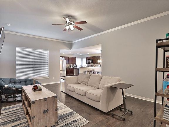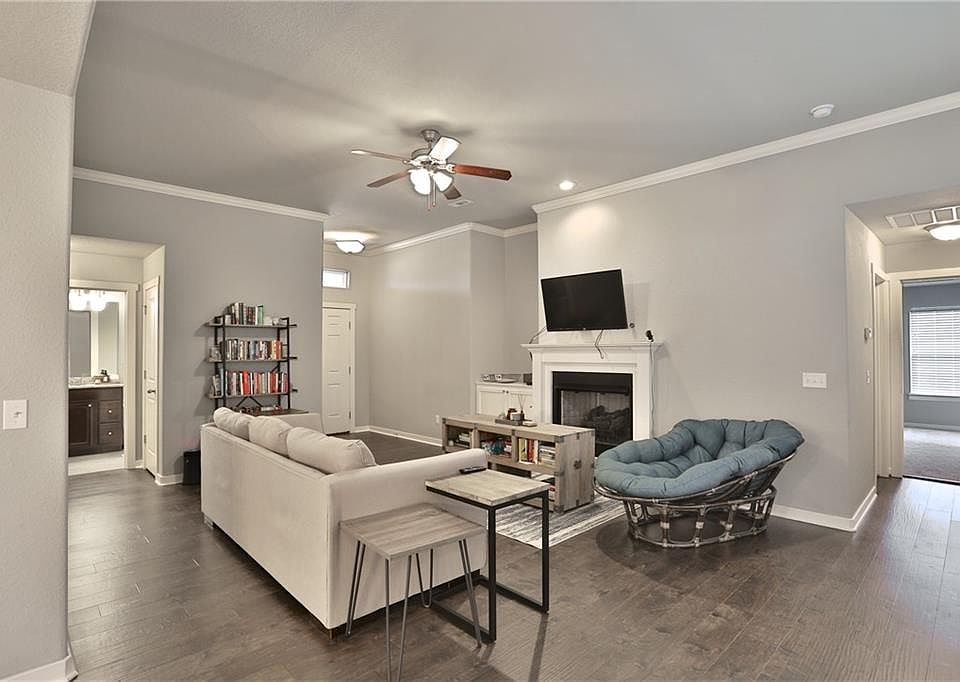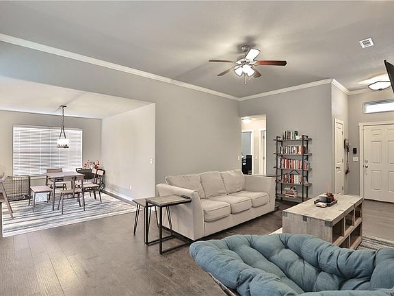 This craftsman style home in Grand Valley is located just across the street from C.L. Charlie and Willie George Park. The home features a split floor plan, granite counter-tops, stainless steel appliances, canned lighting, gas fire place, walk-in master closets, two car garage, covered back porch, hardwood floors in entry, living room and hallway. This home has an oversize backyard as well. Gorgeous newer construction home that is only a couple of years old. Great location close to schools and minutes away from I-49.In addition this house is on a great size lot.