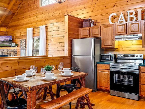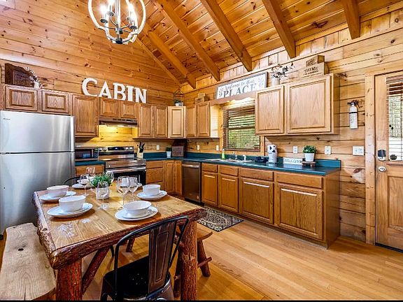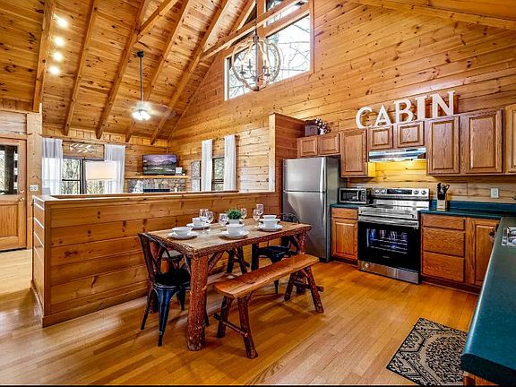Stylish and productive, this cozy retreat in the heart of The Smoky Mountains is a very well established short term rental that you will want to add to your portfolio! Alternatively, if a vacation get-a-way is what you are looking for, this one would make a fabulous second home! This charming 2/2 is nestled among the trees, offering the perfect blend of rustic charm and modern amenities. As you step inside you will be greeted by a warm and inviting open concept kitchen/living area, complete with vaulted ceiling and a beautiful stone fireplace. The fully equipped kitchen features stainless steel appliances and plenty of counter space for prepping and entertaining. New appliances added 11/21. Exterior staining done 3/22