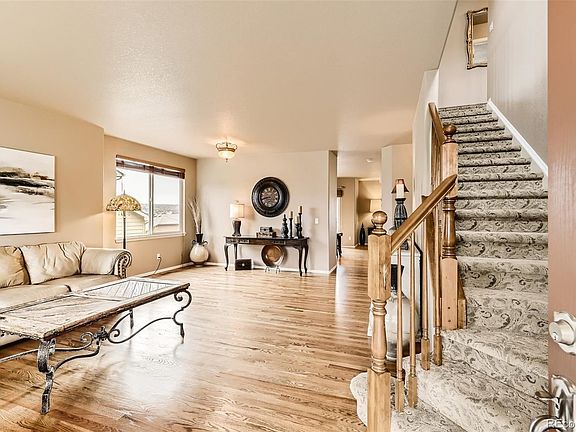 A great 4 bed, 4 bath home in the highly desirable Crystal Valley Ranch community. A Family friendly neighborhood with a great clubhouse, pool, and walking trails. Walking distance to Rhyolite Regional Park and Quarry Mesa Open Space. The home boasts a finished walk out basement with an insulated ceiling, Built in cabinets with countertops for a small kitchen, W/D hookups. The space could serve as an additional apartment, mother-in-law suite or whatever your heart desires. Natural hard wood floors on the main level, new engineered hardwood floor on the upper level, new luxury carpet on the stairs and in the master bedroom. Whole house Hot water Recirculation system. New exterior paint 2021. Quick access to I-25 and downtown Castle Rock which hosts many great events, shopping, and dining. Come and make this quiet, spacious, family-oriented neighborhood your home. Asking all offers to be in by 4pm 5/14