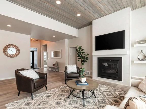 A gas fireplace adds warmth and ambiance to the living area, creating a cozy atmosphere during the colder months.