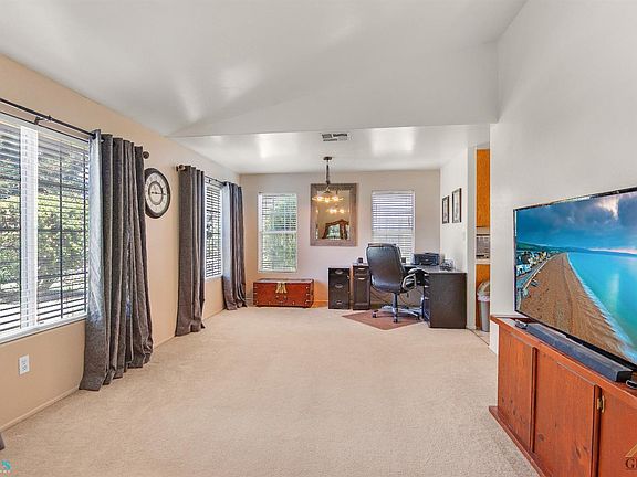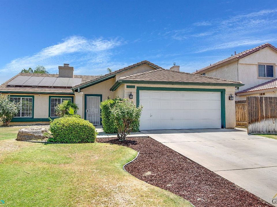 Beautiful 3 bedroom 1.75 bath home in the highly desired Tevis Ranch area with parks, shopping and highly rated schools nearby! Well taken care of inside and out. Newer A/C & Heating unit, newer dishwasher, energy efficient solar panels and newer microwave. Two family rooms with high vaulted ceilings and a fireplace. The kitchen connects with both family rooms, perfect for entertaining friends and family. The low maintenance backyard features a large covered patio that can keep the whole family shaded during Bakersfield summers! Don't miss out on this amazing opportunity while it lasts. Call 661-246-1515 to schedule your private showing today!