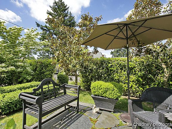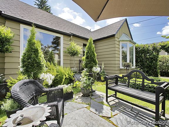 Fall in love with this Roseway English Cottage! Livable floorplan with 2 bdrms on main, attic master & 4th bdrm in basement. Private backyard oasis perfect for outdoor entertaining and a gardener's delight. Lovingly cared for w/tasteful updates. Mt St Helen's view from N Mstr Bdrm window! Finished bsmnt w/potential AirBnB or ADU. Off street parking in driveway that can accommodate several cars & garage you can park in! Walkscore of 79.