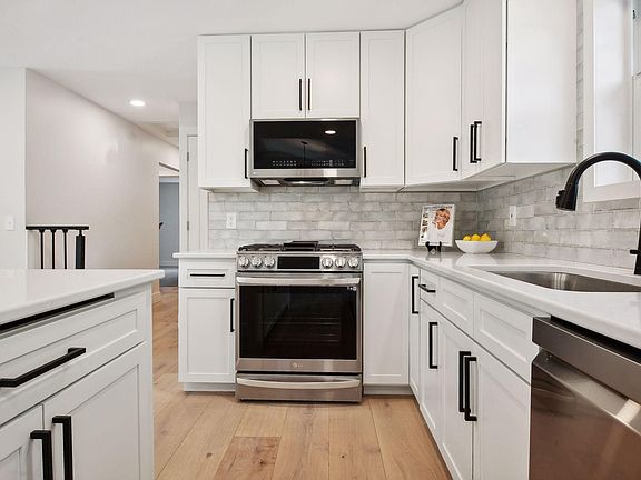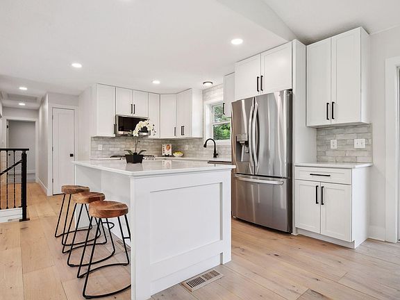 Enjoy one-level living in this amazing, fully remodeled home! Everything has been updated: siding, roof, Andersen windows and doors throughout, garage door, A/C, flooring, light fixtures, completely new kitchen with gorgeous quartz counters, enameled cabinets, and SS appliances. Lovely Primary BR with beautifully tiled private ensuite bath, walk-in closet and 2nd closet with barn door. Flex room on main level can be an office, playroom, or yoga studio – you decide! Relax outdoors for morning coffee or afternoon Happy Hour on the maintenance-free deck. The back of the property has a designated fenced area – create a dog run or a lush garden. Freshly painted shed is perfect for storing yard equipment and toys. Fantastic location in highly acclaimed Minnetonka school district. This remodel is like getting ‘new construction’ in an established neighborhood. (See “Updates” supplement for full list of home improvements!)