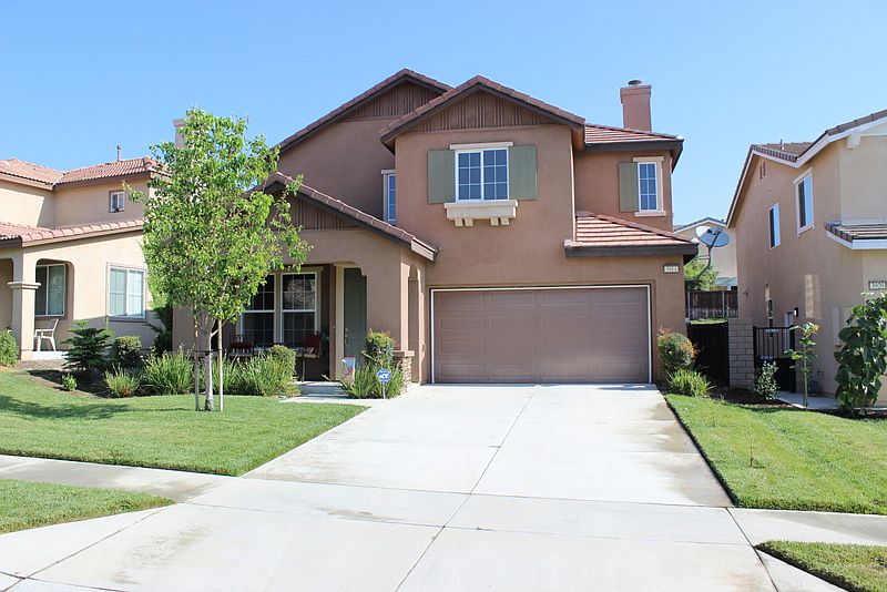 Absolutely gorgeous two story home For Lease located in the North San Bernardino Rosena Ranch neighborhood. This delightful home features 4 bedrooms, 2 bathrooms, 2 car garage, spacious family room, formal living room, wood burning fire place, ceiling fans, large master suite with walk-in closet, double vanity, shower and soaking tub. It also features an open kitchen with gorgeous cabinetry, granite countertops, and tons of storage space. Four spacious bedrooms with large closets, including a master suite with walk-in closet and full bathroom complete with separate shower/tub and built-in dual vanity. Large living room complete with charming fireplace and door leading out to backyard. Fully landscaped back yard and patio with lots of privacy, mountain views and walking trails. HOA features large pool, kids? splash park, walking trails, BBQ area, 24 hr. gym, business center, party room. Sports park coming in 2014 and schools coming in 2015. This development is located minutes from the 210, 15 and 215 freeways for easy access to Ontario Mills and Victoria Gardens. Home includes washer, dryer and refrigerator. Far too much to list, this is a must see! Make your appointment today! Available for September 1, 2014 move in!