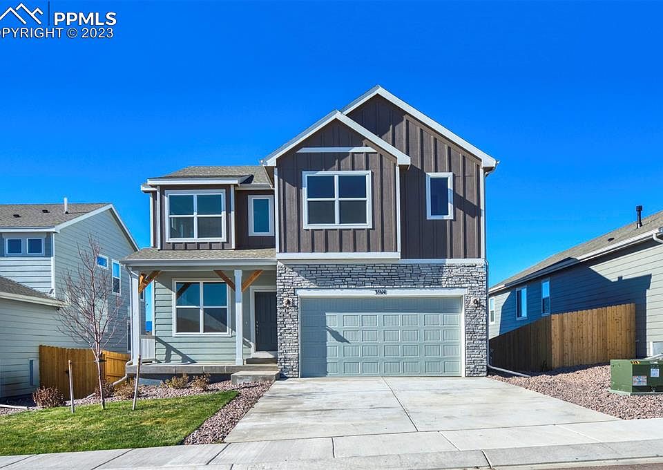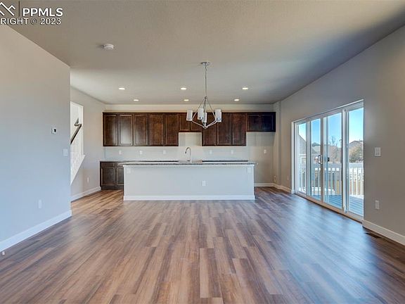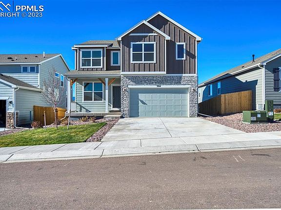 Large 2 story home with 4 bedrooms and a loft upstairs, 2 car garage, unfinished basement with views of Pikes Peak. 4 Bedrooms and a loft upstairs with one of the secondary bedrooms having its own bathroom and walk in closet. The main level has an open design with a flex room and large kitchen with large kitchen island with granite counter tops. This home has plenty of cabinet and counter tops space ad a large pantry. Luxury vinyl plank flooring, granite and quartz counter tops and stainless gas appliances is some of the things this home has to offer.