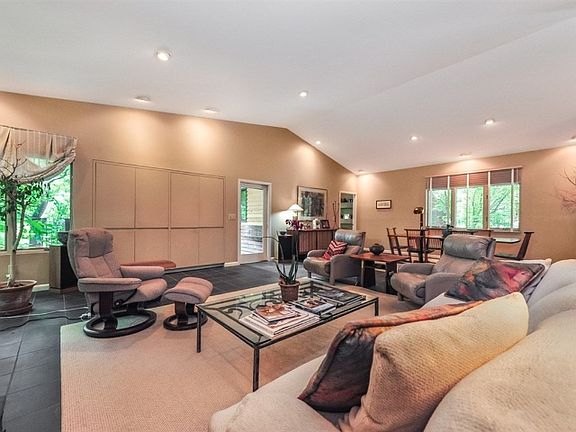 14+/- heavily treed acres, 12 are in an easement for conservation. The home sits on 2+/- acres. All the privacy you will ever want! This well built home has many windows (Anderson) letting in light and 3 interior concrete walls for passive solar heating and cooling (low utility bills). The exterior is cypress (never has to be painted or stained), newer Trane HVAC, roof 2011, kitchen has magnetic induction cooktop with gas hook up, many cabinets, great counter space, right by garage, screened porch and deck....security system and generator. Master bedroom has 2 baths..."his" and "hers"! Downstairs has daylight bedrooms, large rec room and 2 large storage areas. There are fantastic porches, decks, outside sitting areas...green house, many wild flowers on trail to creek! Priced WAY below appraisal!