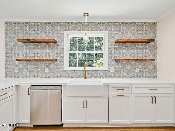 Discover the charm of modern living in Wilmington, NC with this beautifully remodeled home at 3914 Sweetbriar Road. This residence has been thoughtfully updated to blend contemporary style with comfort and convenience. The heart of the home, a stunning kitchen with a gorgeous tile feature wall and open shelves, new shaker cabinets, a farmhouse sink, and stainless-steel appliances, setting the stage for culinary adventures and gatherings. Practicality meets style with the addition of a walk-in pantry and a dedicated office space, perfect for today's work-from-home lifestyle. The transformation continues with new flooring throughout, creating a seamless flow from room to room. A painted brick fireplace centers the living space. The bathrooms have been redesigned to offer a spa-like experience, including walk-in showers that promise ease and relaxation. The open floor plan enhances the sense of space and light, making it ideal for entertaining or simply enjoying day-to-day life. Outside a new deck provides plenty of space for outdoor parties and BBQs. Or sit and enjoy the tranquil mature landscaped yard with a convenient storage shed. Nestled in a desirable central location, this home is situated on a private .33 acre lot, just a short 4.5 mile drive from bustling Historic Downtown Wilmington and 6.5 from beautiful Wrightsville Beach. That means you're never more than a 15-minute drive from sandy shores and ocean breezes, perfect for a spontaneous beach day or night of live entertainment and fine dining. Minutes from shopping, you truly can't beat this location. NO HOA is just an added plus!