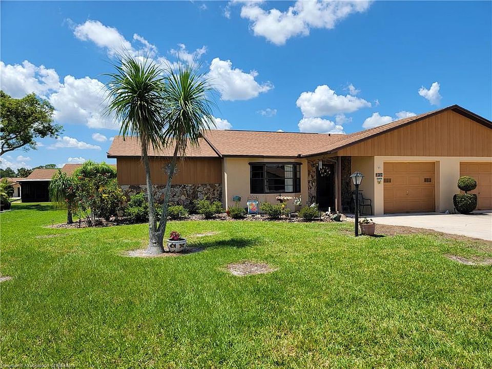 Looking for that affordable 55 + home located in the heart of Sebring?? Well here it is, this Villa will make the perfect seasonal or year around home. This 2 bed/2 bath with a 1 car garage home has a split floor plan. The main living area has a bay window that allows wonderful natural light, it showcases plantation shutters on the window. You have a seating area in the kitchen dining room combo, which flows into the family room. The rear porch is located off the family room, you can enjoy your coffee or conversation time with friends and family while enjoying the beautiful view of the back yard. Your master bedroom also has access to the rear porch, this bedroom has wood laminate flooring, walk in closet and master bath is equipped with a walk in shower. The community pool and clubhouse is almost in your back yard, it is just quick walk 2 doors down. The roof was installed in 11/2022, AC 2018, hurricane shutters.