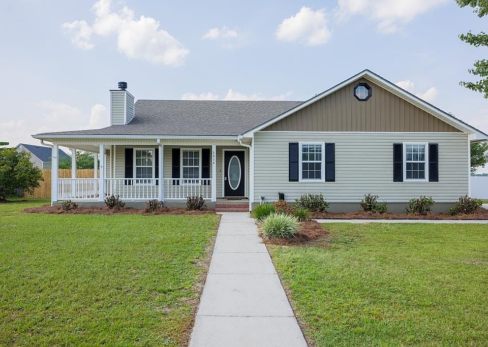 Come home to this wrap around porch, fresh landscaping, spacious corner lot, and backyard that backs up to country fields. Easy commute to Moody AFB, VSU, SGMC and more. Plenty of room to spread out on this half acre lot with fenced yard!! 3 bed 2 bath with classy white kitchen and bathrooms that have been updated. Enjoy entertaining with a fireplace in the living room that opens up into kitchen and dining area. Master bedroom has trey ceiling, en-suite bath and large walk-in closet. New carpet in bedrooms! Side entry garage provides plenty of parking. No HOA! House has upgraded air ventilation system that draws heat out of the walls and attic, with thermostats in various rooms that allow a more comfortable, temperate climate control. This home is fresh, updated, cleaned and ready for its new owners to bring the porch swing!