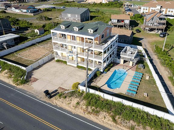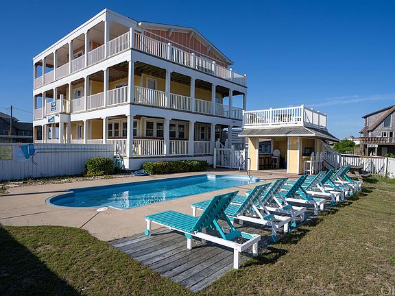 STUNNING UNOBSTRUCTED OCEAN VIEWS WITH FUN AMENITIES. This semi-oceanfront property with direct beach access features 6 bedrooms, 7 full and 1 half baths and is nicely furnished to accommodate guests of all ages. The property includes an elevator for easy movement between levels. Amenities include...private in-ground pool with poolside cabana and rooftop deck...hot tub...pool table...second kitchen area with kegerator, two taps, large commercial refrigerator and ice maker...home theatre room...volleyball court...nine-hole miniature golf course...horseshoe pit. Wrap-around decks provide plenty of spaces for swinging in a hammock or curling up with a good beach read. The home is well-maintained, with a new roof installed in 2019 and the exterior freshly painted in 2022. Owner rental income for 2024 already exceeds $150,000.