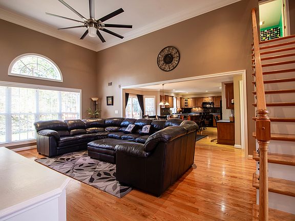 Fabulous 4 bed/3.5 bath home with many upgrades, open floor plan, 3-car garage, flat/private lot and a finished basement that is great for entertaining! Gorgeous custom moldings. Kitchen has hardwood flooring, an island, lots of cabinetry & opens to the large back deck. Kitchen is also open to the great room with 14' high ceiling, built-in bookcases, hardwood flooring & fireplace. Formal dining room has wainscoting & tray ceiling. 1st floor master has vaulted ceiling, a huge walk-in closet & a luxurious full bath with dual sink vanity, whirlpool tub & separate shower. Main level also includes a laundry room & half bath conveniently located just as you come in from the garage. 2nd level includes 3 large bedrooms with easy access to attic space for extra storage. Basement is finished with a large open area that includes a family room, a bar, a rec area and more. There are 3 large egress windows that provide lots of natural light. There is also a full bath and a bonus room that is great for a possible guest bedroom or mother-in-law suite. There is a closet but no egress window. Basement has storage space as well. Backyard includes a large deck and is fully fenced. Maintenance free exterior and beautiful landscaping. Newer HVAC and roof (2017). Subdivision has a pool, clubhouse, fitness center and tennis court which are all included in the HOA fee. This home is a must see!