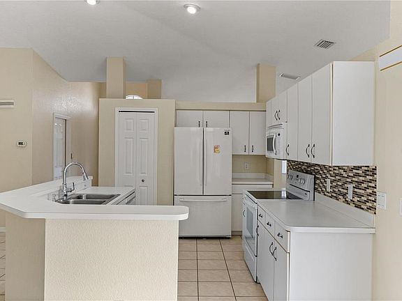 One or more photo(s) has been virtually staged. Step into this stylish and inviting home, nestled on a generous quarter-acre lot. The kitchen boasts vaulted ceilings, recessed lighting, and a central island with barstool seating, perfect for everyday meals or entertaining guests. A graceful archway from the entry leads to a bright living room, illuminated by a beautiful bay window that floods the space with natural light. Sliding glass doors open to a fully enclosed back patio, ideal for relaxing or hosting get-togethers. The split floor plan ensures privacy, making it great for families or visitors. Freshly painted throughout, with a fully serviced AC system and a brand-new garage door system complete with sensors, motor, and remote, this move-in-ready home combines charm and reliability. Located near shopping, restaurants, and more, this home has everything you need. Come schedule your tour today!