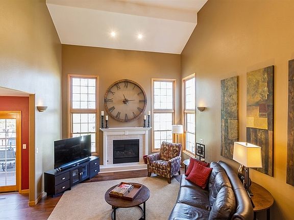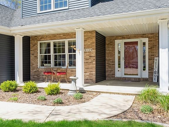 This gorgeous custom home minutes from restaurants and shopping has so much to love! The major projects – new siding, new roof, remodeled kitchen & primary bathroom (has heated flooring) have all been professionally completed allowing the new owners to come in and relax and enjoy the ease of the spacious layout and the gorgeous view of mature trees behind. Much natural light comes through the many windows of the home. When you walk into the entry way you are amazed by the 16 foot ceilings in the living room and the large windows. The first floor features a very spacious primary bedroom (a very rare find in a two story) with an adjacent primary bathroom (with heated flooring) and large primary closet. Entertaining is made easy with a formal dining room, a large eat in kitchen space, and island bar seating. There is a half bathroom for guests as well as a large laundry room. Upstairs are two large bedrooms and a full bathroom. The lower level of the home is complete with a family room that is extra spacious, giving plenty of room for exercise equipment if desired. There is a very large fourth bedroom that is perfect for guests and another full bathroom as well as a designated office space. Both the living room and family room have gas fireplaces. The walk out lower level allows you to easily enjoy the patio and beautiful landscaping. The trees behind are breathtaking when in full bloom and they are owned by the association behind so there is no maintenance for the new owner. The owners are often told they have the best lot of the block. New oversized gutters with covers were installed in 2022 making. The home is located on a cul-de-sac. One year HSA home warranty included. The property line goes a few feet past the thicket line.