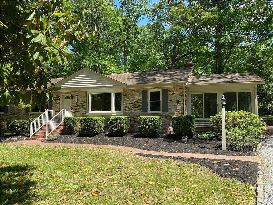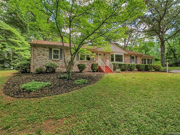 All that you expect from a Mid-Century Ranch & more! Located just off Huguenot and Cherokee Rds, min from the River, easy access to town & just a hop to Bon Air & all your favorites at Trader Joes! Tucked away on a quiet .55 acre lot w/extensive hardscape & gardens, this brick home offers 1751 SF w/wonderful features, upgrades & bright, open plan. Filled w/light from an oversized bay window, spacious Living Room welcomes you in. It flows directly to the open Kitchen & Dining Room which include cheerful white cabinetry-with added pantry storage-perfectly accented w/solid surface counters, glass tile & open shelving. Step through arched opening to cozy paneled Den with its corner wood burning FP & built-ins, ideal for your library of books. Not to be missed, is the gorgeous vaulted Sunroom- airy & bright, it is surrounded by glass on 3 sides & takes full advantage of the privacy of the setting. Much of the interior including all 3 Bedrooms have been freshly painted with modern colors and you will love the spacious spa Bath with shower and soaking tub! Insulated windows and doors, NEW hot water heater, attached shed/workshop, attic storage. A beautiful unique HOME!