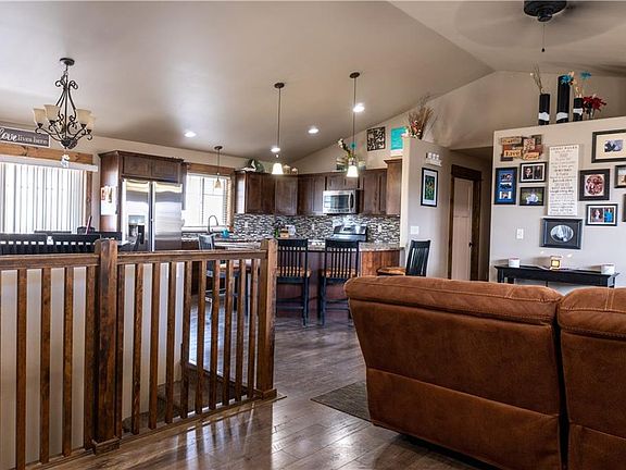 This property is surrounded by views of hills, scattered trees and the City. Makell is a no-through traffic street with the home sitting at the foot of a cul-de-sac. Enter into an open vaulted living room with plenty of natural light. Wood Laminate carriers through to the kitchen, and dining room. Fire place warms those cold winter nights in the living room. The Kitchen has beautiful darker wood accents and a complementary backsplash. Wood trim throughout with and entrance to the back patio and main floor laundry.. The lower level boast a large family room with 2 bedrooms, full bathroom, additional storage and a wonderful surprise. The exterior back area is fully landscaped with a concrete patio and additional RV parking to the side of the home.