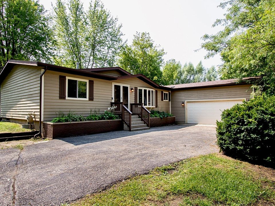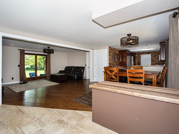 Lots of WOW in this move in condition Ranch! Hardwood flooring throughout living and bedroom areas, Remodeled kitchen with all Whirlpool SS appliances, granite and breakfast bar. Nice size bedrooms and master bedroom with his & her closets and remodeled master bath. 4th bedroom (no closet) and a SUPER SIZE recreation area in the newly finished basement. Exterior access to the HUGE garage. New water heater, freshly painted in most areas including exterior trim, some refinished flooring. The circular drive and large deck all on a beautiful corner lot with over an acre to stretch out on and make your own.