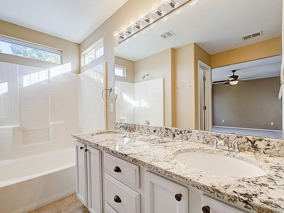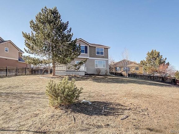 This Castle Rock cul-de-sac two-story offers a fireplace, granite kitchen countertops, a deck, and a two-car garage.