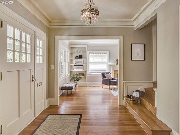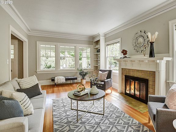 Laurelhurst Opportunity...a mere stroll to the park. This one is special! Grand porch and formal entry flanked by lovely living room with hardwoods and formal dining room with hutch, box beams and bi-fold French doors. Enjoy 3+ beds upstairs, plus playroom for kids or yoga. Charming updated kitchen with quartz counters, gas cooking & new appliances. Den/office on main. Family room on lower level. Includes high efficiency gas furnace and gas water heater. Fenced yard with patio. Sturdy garage.