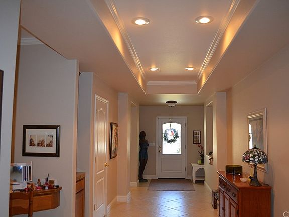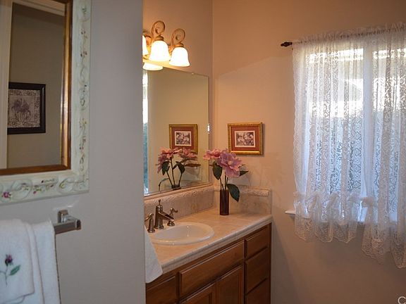 Well maintained beautiful 2004 home with 2,354 sq ft, it features 3 large bedrooms, 2 baths, tile roof, crown molding, ceiling fans throughout, large family room with fireplace, full bathroom with tub over shower, large open kitchen with breakfast nook area, stainless steel appliances, electric stove, granite tile countertops and tiled throughout, trash compactor, maple cabinets, giant master bedroom with walk-in shower and a jetted spa, indoor laundry room with a sink, alarm system and 2 car garage.