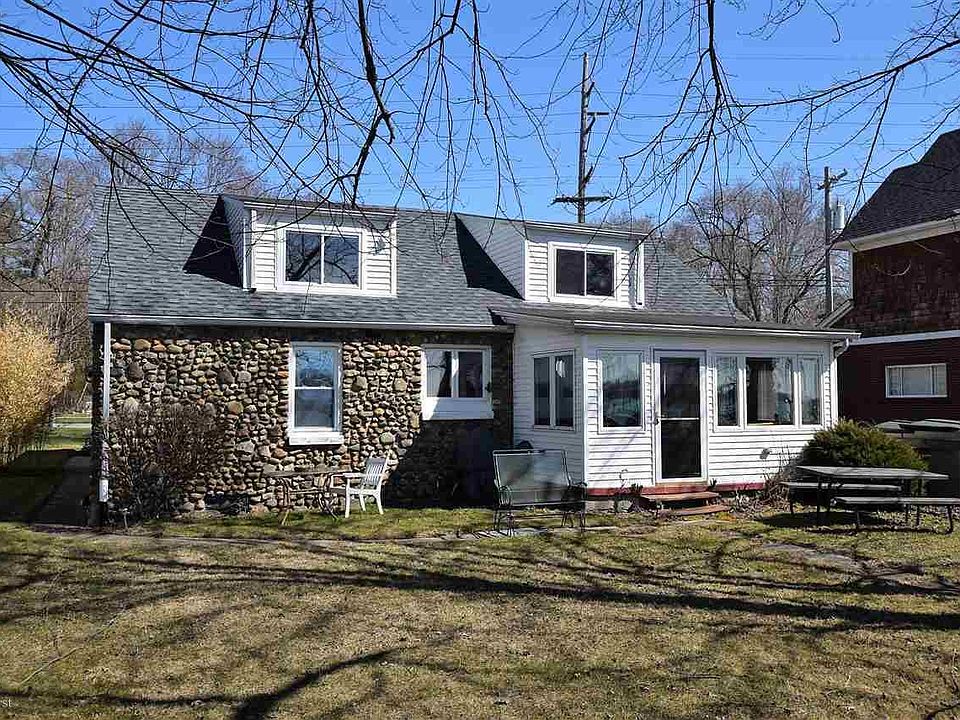 Unique FIELD STONE 4-bedroom Bungalow w/ frontage on the North Channel of the Saint Clair River. Updates include roof, windows, plumbing & electrical. Surrounded by beautiful $500K+ river homes. Just outside Algonac city limits (low taxes), yet close to downtown boardwalk, shops & restaurants. Steel seawall is in very good condition, with plenty of frontage for a private dock & boat hoist. Two comfortable bedrooms on first level, and two bedrooms on upper level. Spacious living room leads to quaint sunroom with beautiful view of the river. 1.5-car attached garage to store your toys. Appliances & one year home warranty included. Property taxes are NON-homestead, and will be significantly lower if used as primary residence.