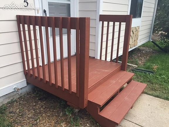 Great location with mountain views from new front entry deck. New interior/exterior paint, carpet and linoleum throughout home. New Roof & gutters Mar 2017, new garage door opener Aug 2017. Lots of room. Great for the kids with finished basement plus family room. Add a closet & you have a fourth bedroom! Large fenced backyard. Priced to sell! Conveniently located by World Arena, movie theaters and Fort Carson.
