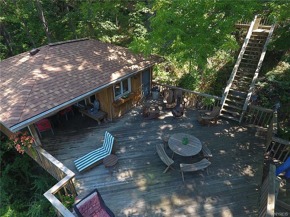 Welcome to a water lovers dream. Your very own tree house.Feast your eyes on this gorgeous riverfront space. Take a walk down the sloping wooden staircase through the tree tops to beautiful spacious wooden lounging deck .It features a elevated cabana and covered outdoor deck space. The cabana has a mini kitchen including a fridge and kitchen area . Also a sitting area with sliding glass doors overlooking the water. There is space for 4 cars to park.