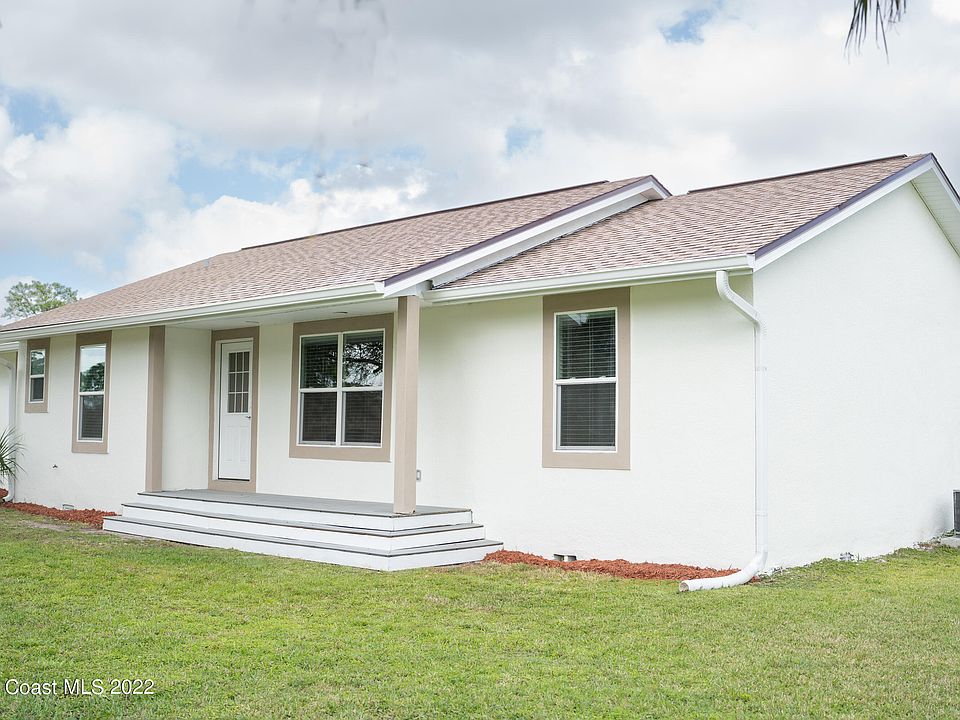 RARE OPPORTUNITY... Florida living at it's finest in a great location. Full acre lot in the Groves with a private pond. Beautiful front and back patios leading into an open floor plan with a split plan. Fully renovated home, brand new...roof, a/c and ductwork, quartz countertops, laminate plank flooring, septic, stainless steel appliances, front deck, back deck, joists, tankless water heater, energy efficient windows, sod, dry wall, paint, insulation, LED lighting and switches, sub floor, almost a complete new home. Plenty of room for a pool, garage, workshop etc...