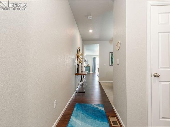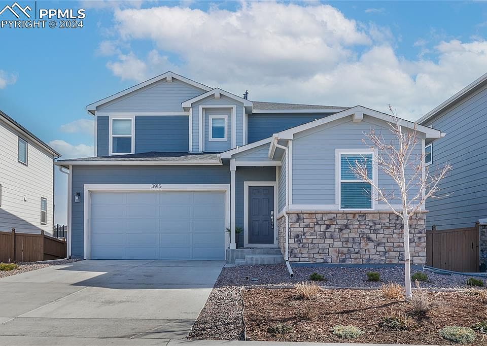 WOW! This property has it all- Energy efficient Meritage home resale. So don't worry about putting in a yard or fence- Already there- Blinds? Already there!. RARE Unfinished walkout basement that backs to a walking trail is ready for whatever you have in mind. When I say it has it all - YES even a bath tub in the 5 Piece Primary bath- If you have been looking at the Meritage homes you may have figured out that this was not a standard feature it was an upgrade that many did not select or were not able to depending on the stage of construction that it was contracted. 5 Bedroom total- 1 bedroom on the main floor conveniently located next to a main floor Full Bath especially for a guest. The "Formal Dining room" could also be viewed as flex space so could be an office or even a playroom for children, whatever suits your needs. THe eat-in kitchen has space for a table as well as bar seating at island. Appliances are included (Washer and Dryer are negotiable)The large inviting family room has a gas fireplace and plenty of room for seating, Upstairs are 4 more bedrooms including the Primary suite with attached Laundry room through Primary closet and also a hallway entrance. 10 Ft ceilings on Main floor and Basement 9 Ft floors on 2nd Floor. Walkout unfinished Basement is a walkout to a minimal maintenance yard with Rock and astroturf. Neighborhood amenities include a dog park, 2 swimming pools and a club house.
