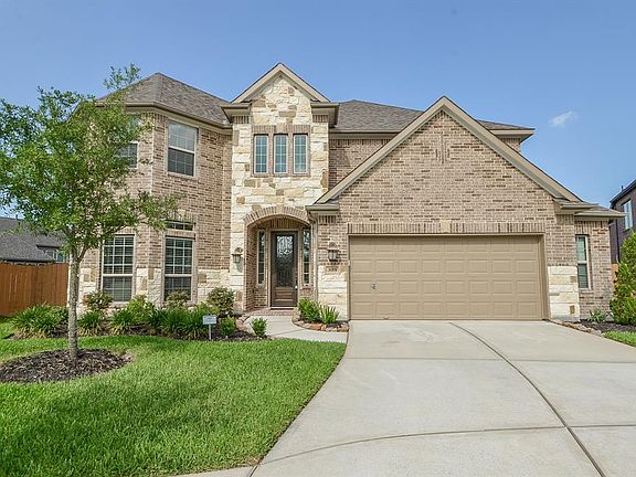 Stunning stone and Brick 4 bed 31/2 bath home in Harmony subdivision. This Luxurious home is conveniently located close to Grand Parkway. This home boast soaring Ceilings, Beautiful wall of Windows, Island kitchen with beautiful granite and stainless steel appliances, Master suite downstairs with two separate vanities large tub separate shower and two walk-in closets. study and formal dining room also downstairs. Then go upstairs for three more spacious bedrooms two with jack and jill bath as well as game room and separate media room. You can enjoy large fenced back yard with large covered patio great for grilling plenty of room for patio furniture all on a cul de sac in a great master planned community with top rated schools. Come see Soon!