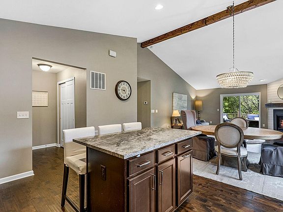 This beautiful rambler home has a newly finished walk out lower level. Main level living includes a master suite with private master bath and walk in closet. Two additional bedrooms are located on the main level and could be used for an office or craft room. The 4th bedroom is located on the lower level. Lots of upgrades have been included in this home including 12 foot ceilings on the main level, upgraded granite counters, updated lighting, gas fireplace in the living room with shiplap surround. The lower level features a freshly finished open family room with electric fireplace, new walk behind wet bar, and 3/4 bath with custom tile work. A lower level flex room can accommodate a home gym or office.