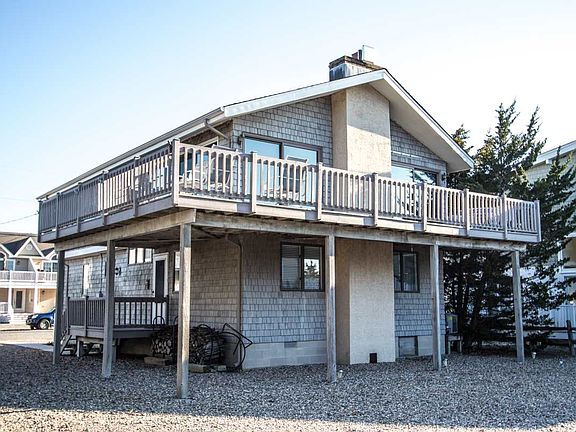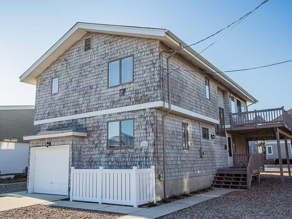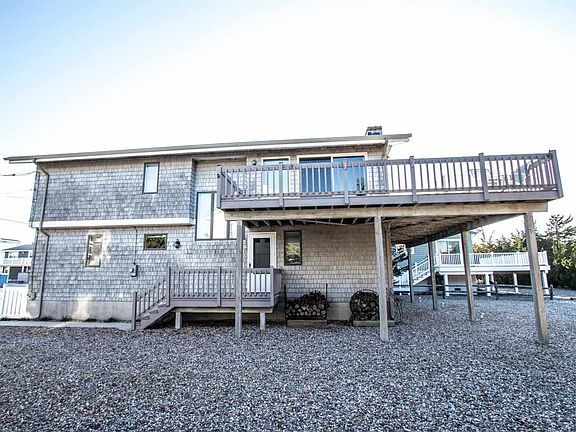 A GREAT FIND! This refurbished single-family home sits on a large 60 x 100 corner lot in a quiet neighborhood just a few blocks from huge beaches and only a block from tennis & basketball courts and a playground. The ever-popular Upside Down style floor plan features a thoughtful design with the Living/Dining/Kitchen area in the rear of the home in order to enhance the privacy! In addition, the homes located behind this property have their decks on the rear (bay side) of the property and that too enhances the privacy for this home! Enjoy the peek of the bay from the Living Area and the huge wrap-around sun deck. The impressive, wide-open Great Room is highlighted by a cathedral ceiling, wood burning fireplace and abundant use of glass, all of which combine to create an inviting, bright & airy atmosphere! The home features a refurbished interior, which included some fresh painting, new carpeting throughout, new bathrooms, a new kitchen w/granite counters, stainless steel appliances and hardwood flooring. Two new heating & cooling systems were installed in 2013 and they are professionally serviced each year. The property also features awnings, which are currently being stored off-site. The large rear yard offers plenty of room for a pool! The first floor of the home features 3 bedrooms, 1 bathroom, a laundry room and a garage that offers plenty of storage plus a door providing convenient access to the side of the house. The 2nd floor features the Great Room, the Master Suite & a Powder Room. Act now!