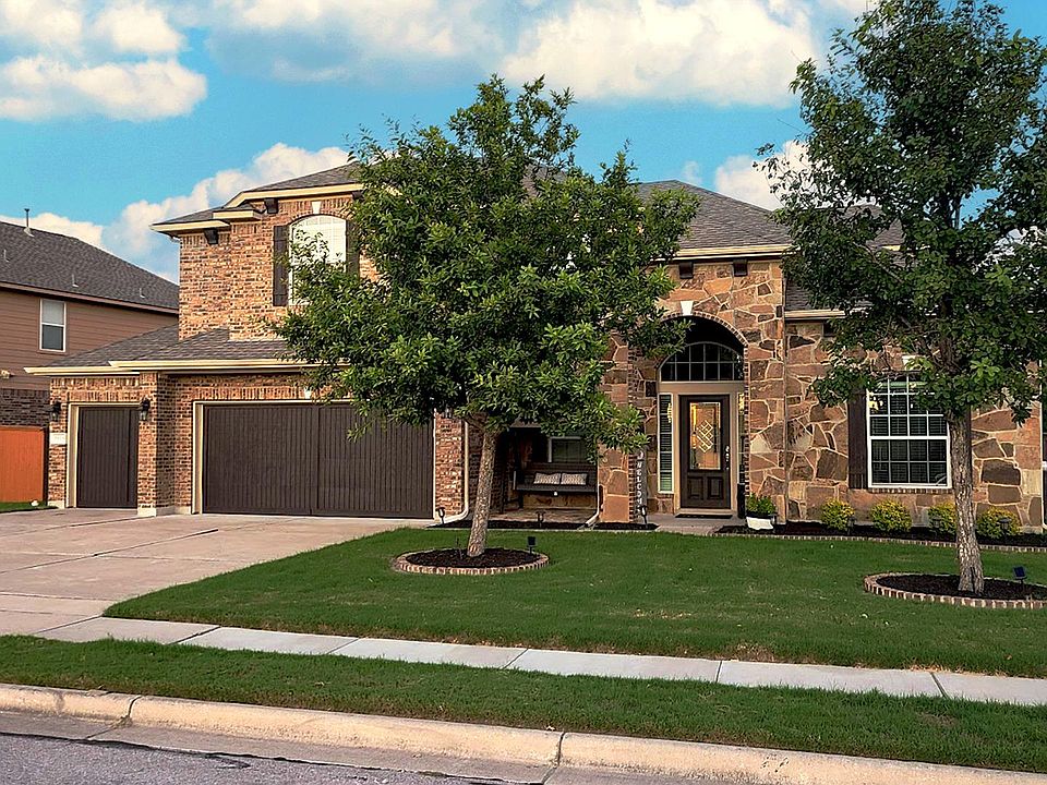 A stunning home that has everything you need! REFRIGERATOR, WASHER AND DRYER INCLUDED! BBQ GRILL and MEAT SMOKER INCLUDED! Available unfurnished, partially furnished or fully furnished! Also... Location, Location, Location!! This home is across the street from the pool, park, hike/bike trails, basketball court, and future beach volleyball court which gives you an awesome view when working in the office. Just minutes to Costco, Typhoon Texas, Stone Hill Center with restaurants and shopping. Easy access to TX 130 & 45 with fast commute to Austin, Tesla, Amazon, and many more corporate companies. Great schools INSIDE the neighborhood! RV Plug in garage for electric vehicles! Community amenities include a playground, community pool, covered picnic tables, multiple different sport courts (basketball, soccer, beach volleyball) and so much more! Most of which are right across the street. Wood garage doors and stunning stone with brick exterior make for incredible curb appeal. Open concept living with spiral staircase and vaulted ceilings. Wall-lined windows fill the area with beautiful natural light. Upgraded LED lighting thru out. The kitchen features dark wood cabinetry, granite countertops, stainless-steel built-in range, oven and microwave. The spacious master suite with tray and crown molding ceilings opens through double doors into the luxurious private ensuite bathroom with a walk-in closet, separate dual vanities, garden tub and separate shower. Upstairs you will find all the fun with a game and media room along with 3 bedrooms and two full bathrooms. Relax in the shade on the covered back patio or entertain friends and family. Spacious fenced backyard with green grass and tons of potential for a friendly game of kickball. Three car garage with door to the backyard, workshop, plenty of storage and in ground automatic sprinklers. $55 application fee per adult Minimum 3x rent as income. Minimum 660 credit score. No Smoking. Pets deposits etc. are on a case to case basis No more than 2 non-familial related occupants. $0 security deposit available with the use of a Rhino Security Deposit Policy (optional) Owner pays for Landscaping and HOA. Tenant pays for Utilities (Gas, Electric, Water/Trash/Recycling, Internet/Cable). No smoking, no vaping.