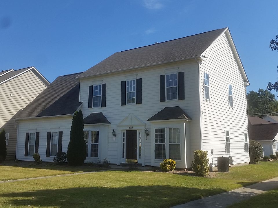 Welcome home to 3916 Faith Church! This lovely home, in coveted Lake Park, boasts a large, updated kitchen with breakfast area, granite and gas range! A dining room, office with french doors, half bath and cozy family room complete the freshly painted first floor. Upstairs, there is a large master suite with 5 piece en-suite bath and walk-in closet. There are also three other bedrooms as well as the laundry closet and full bath. Outside, the backyard stands out from all of the other properties on the street! This home has not only a 2-car garage, but also a built-in car port! This provides you the opportunity to keep your car dry and still have plenty of room for storage or bonus work space! In addition, there is a shed and fenced in backyard with a patio! The seller had the home pre-inspected and is providing a home warranty! Come fall in love with this home today and move in with confidence! Showings start at 10:00 on Friday, June 12th!