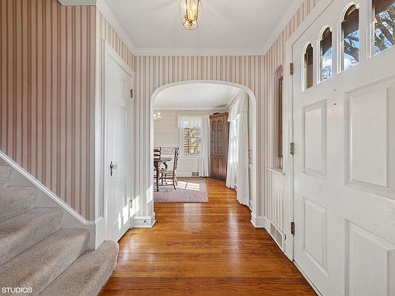 Welcome to this delightful 4-bedroom, 2.1-bath home nestled on a picturesque tree-lined street in the heart of Western Springs. With sidewalks leading to the vibrant historic downtown, this home offers the perfect blend of charm, convenience, and modern living. Step into the inviting living room, where rich hardwood floors, a cozy fireplace, and an elegant arched entryway create a warm ambiance. Just off the living room, a quaint office space filled with natural light provides the perfect spot for work or relaxation. Flow seamlessly into the family room, featuring another fireplace and stunning French doors that open to a pergola-covered patio-a true backyard retreat. The kitchen, overlooking the family room, boasts an eat-in dining area, ample counter space, and a dedicated coffee bar nook. A convenient side entry from the kitchen leads directly to the driveway and detached garage. The formal dining room showcases beautiful hardwood floors and a graceful rounded entryway. A first-floor half bath completes the main level. Upstairs, the primary suite is a true retreat with its private ensuite bath, while three additional generously sized bedrooms share a full hall bath. Downstairs, the finished basement offers endless possibilities with built-in cabinetry and a desk-ideal for a secondary family room, play area, workout space, or home office. The laundry area includes a large tool zone, a DIY enthusiast's dream! Outside, the lushly landscaped backyard is perfect for entertaining or play, offering a serene escape. This Western Springs gem is a rare find-don't miss your chance to call it home!
