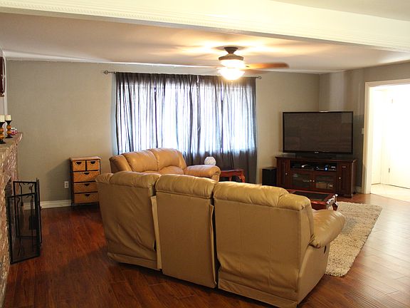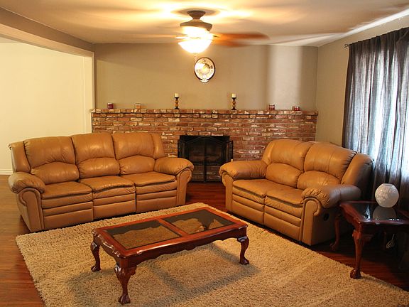 Come check out this 3 bedroom, 1.75 bath property. This home features a great room with brick fireplace, lovely spacious kitchen with breakfast bar and breakfast area with access to the backyard. There is also indoor utility too. The master bedroom offers two closets and the remodeled master bath has a single sink and tile shower. The nice sized backyard features a covered patio with lush greenery and various fruit trees!